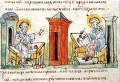 Известно, что среди древнерусских книжников было особенно много не только духовных лиц, но также бояр, князей и княгинь. Образованнейшим человеком своего времени являлся князь Владимир Мономах, покровительствовавший литературе, летописанию, имевший собственные литературные опыты. Его знаменитое «Поучение» дошло до нас в единственном списке в составе «Лаврентьевской летописи»[5]. Князь Всеволод Ярославич, отец Мономахов, был также весьма образован: «дома сидя, знал пять языков, оттого и честь от других стран»[6]. Любовью к грамоте и собиранию книг отличался и князь Никола Святоша, внук того Святослава Ярославича, что «книгами наполнил клети свои»[7]. Никола постригся в монахи в Киево-Печерском монастыре и свое богатое книжное собрание принес в дар обители. Он стал одним из первых русских святых княжеского рода, просиявших в лике преподобных, первым князем-иноком Древней Руси.