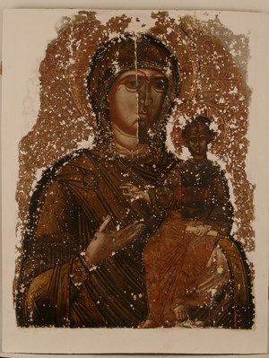 …С Нее сорвали серебряные одежды, оставив белые раны на вековом левкасе. Ее бросили на пол. Пыльный след кроссовки современного варвара запятнал одежды Богоматери…