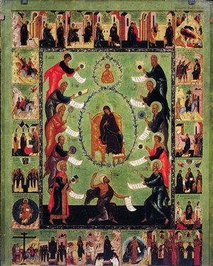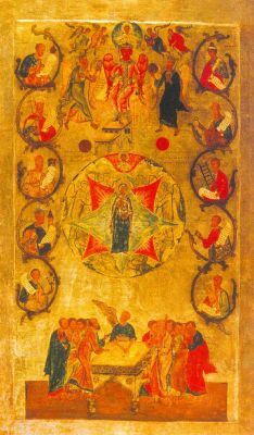 [3] Икос – церковное песнопение, содержащее прославление святого или празднуемого события. Первоначально икосами назывались все 24 песни акафиста, но позже краткие песнопения получили названия кондаков.
