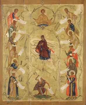 Цикл иллюстраций акафиста Богородице окончательно сложился не ранее последней трети XIII века и вскоре получил распространение в монументальных росписях, в иллюстрациях рукописей, на иконах и в произведениях шитья.