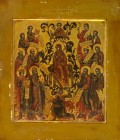 Известен также круг русских икон с изображением акафиста Богородице. Одной из древнейших икон Похвалы Богоматери является икона «Похвала Богоматери с Акафистом» из Московского Успенского собора, созданная греческим мастером во второй половине XIV века.