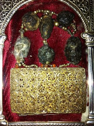 Честные дары волхвов помещаются в десяти ковчегах. До настоящего времени золото сохранилось в виде 28 небольших подвесок различной формы (многоугольник, четырехугольник, трапеция и т. п.). Поверхность каждой из подвесок покрыта тончайшим филигранным орнаментом, который ни разу не повторяется. На серебряных нитях к золотым пластинам прикреплены бусины, состоящие из смеси ладана и смирны.