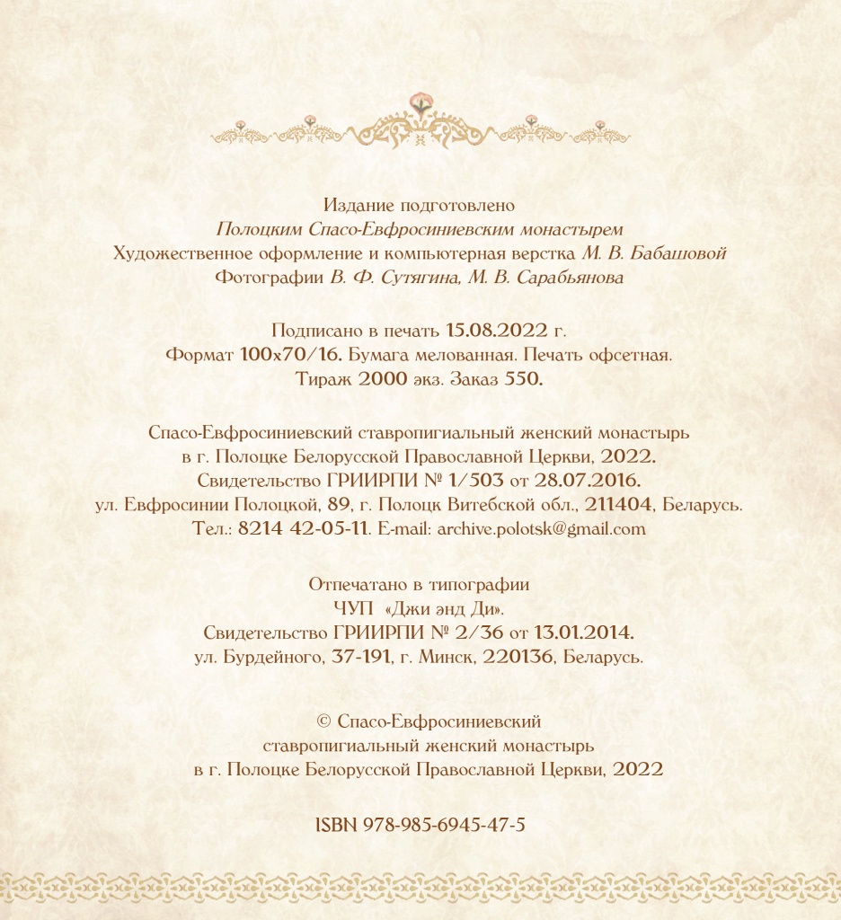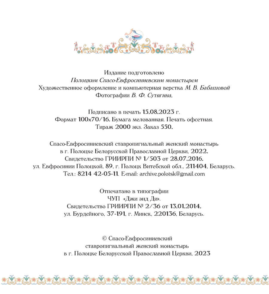 Книги, изданные Полоцким Спасо-Евфросиниевским монастырем