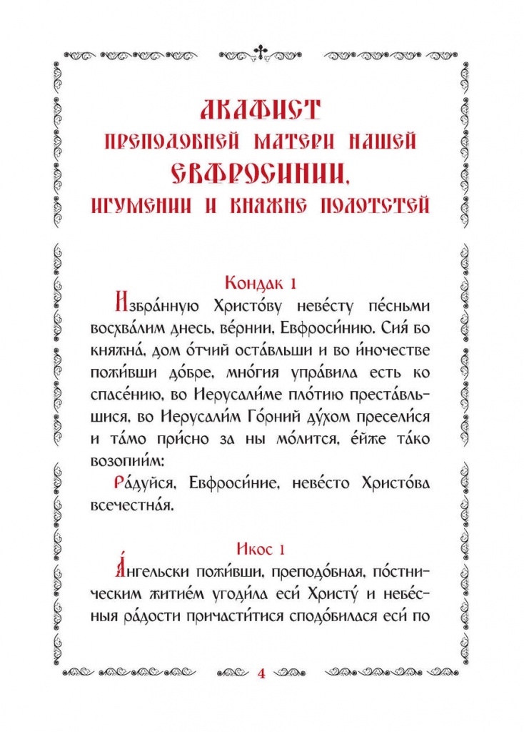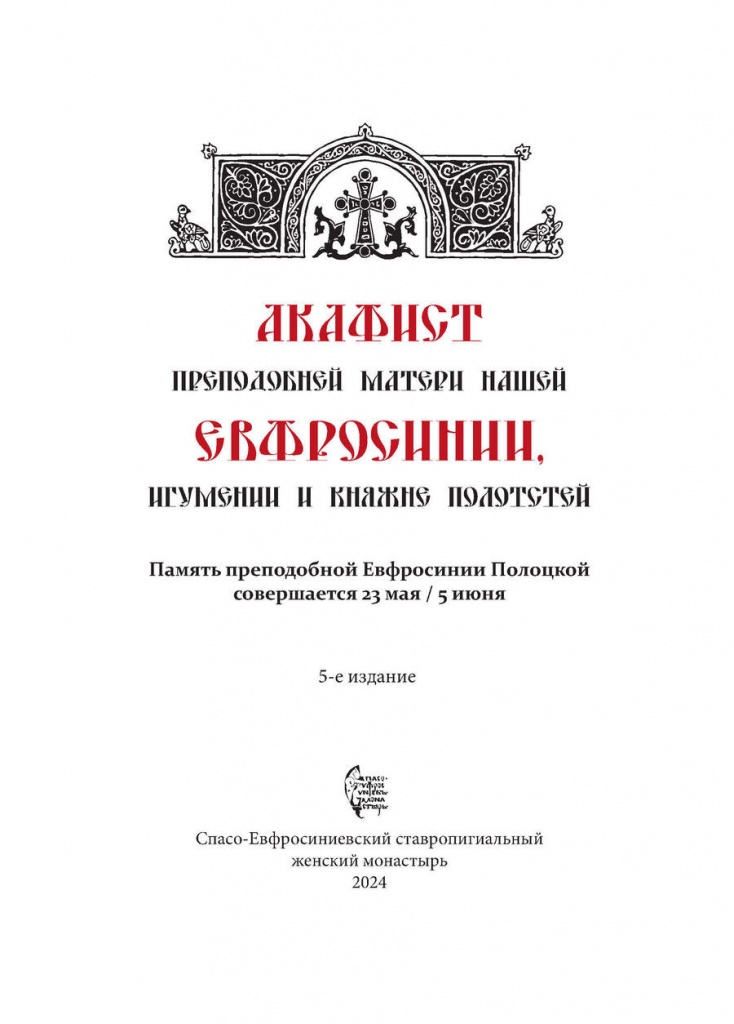Акафист преподобней Евфросинии, игумении и княжне Полотстей (148,5х210 мм)