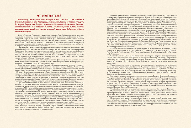 Полоцкое Радование. Свято-Евфросиниевские Торжества 1910 годаМесто издания: Полоцк Год издания: 2010 Примеры страниц: