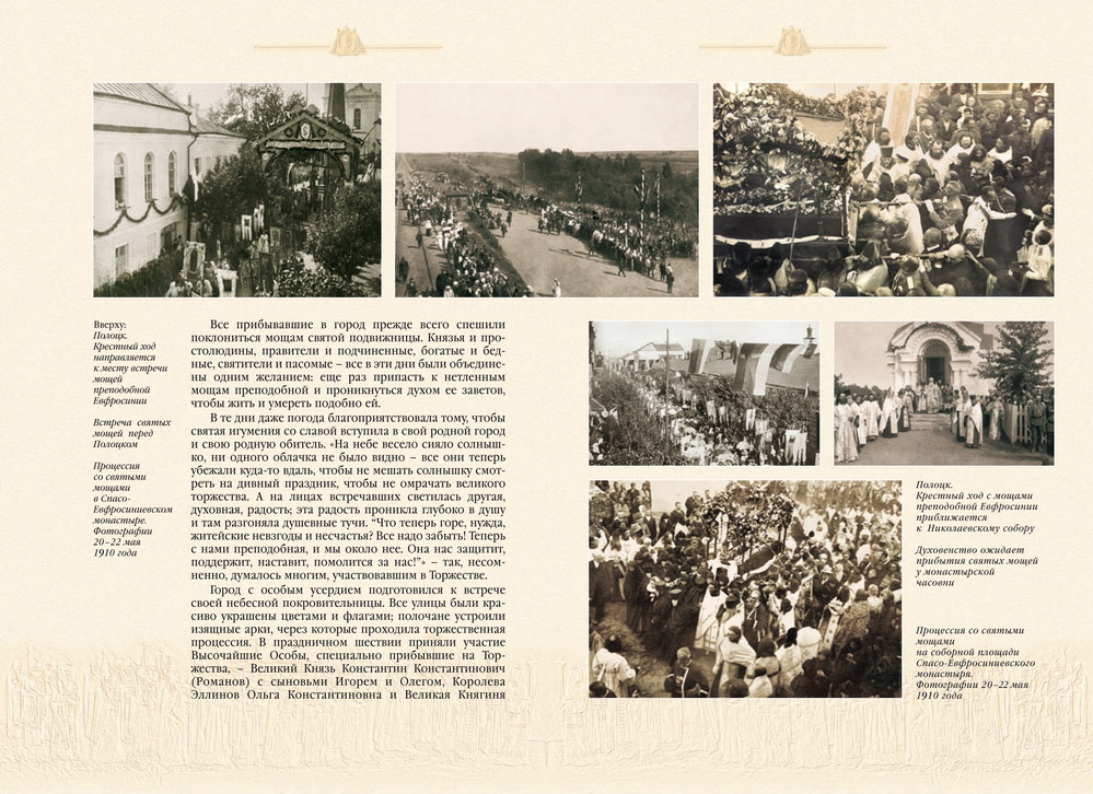 Незабвенные дни. Фотолетопись Свято-Евфросиниевских Торжеств 1910 года. (Твердый переплет)Место издания: Полоцк Год издания: 2010 Примеры страниц:
