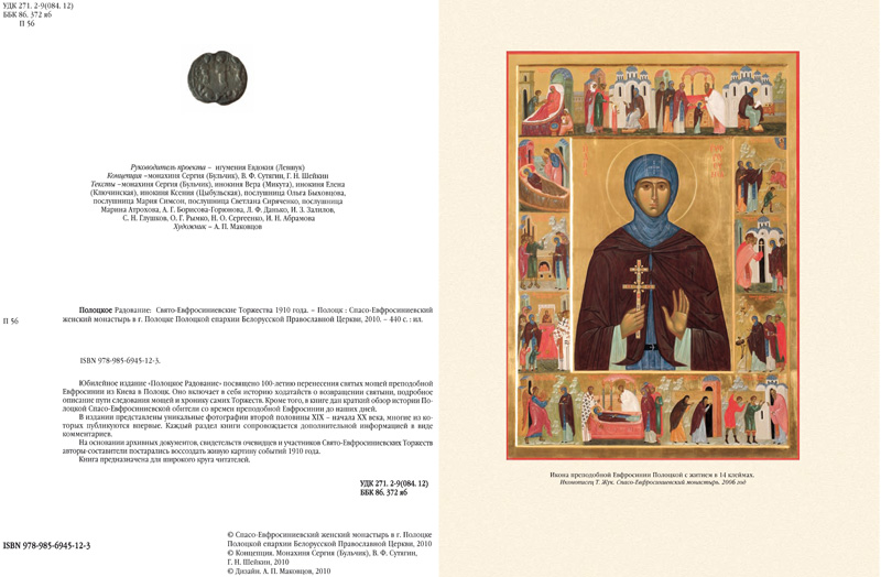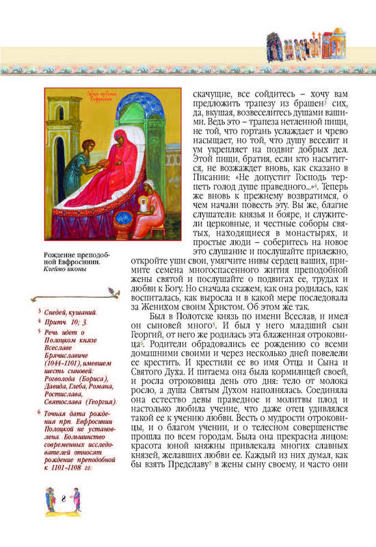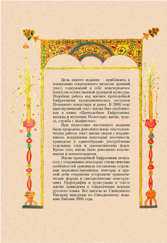 Житие преподобной матери нашей Евфросинии, игумении и княжны ПолоцкойМесто издания: Спасо-Евфросиниевский монастырь в г. Полоцке Год издания: 2012 Примеры страниц: