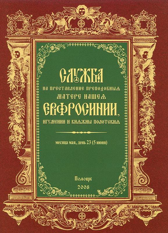 Служба на преставление преподобныя матере нашея Евфросинии, игумении и княжны Полотския. Месяца мая, день 23 (5 июня)Место издания: Полоцк Год издания: 2008