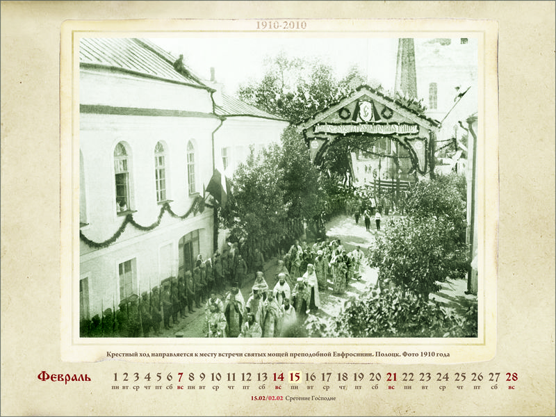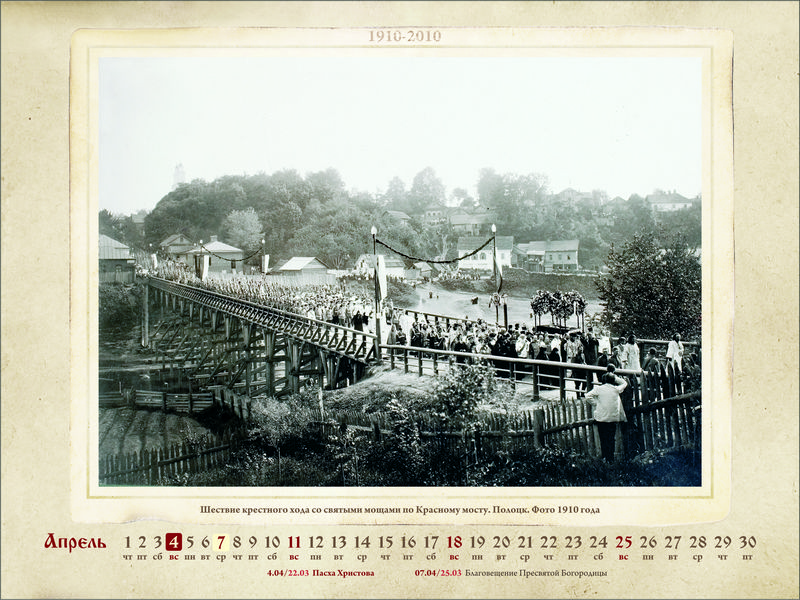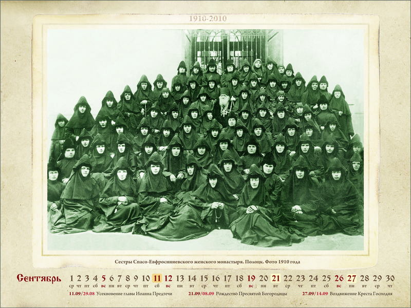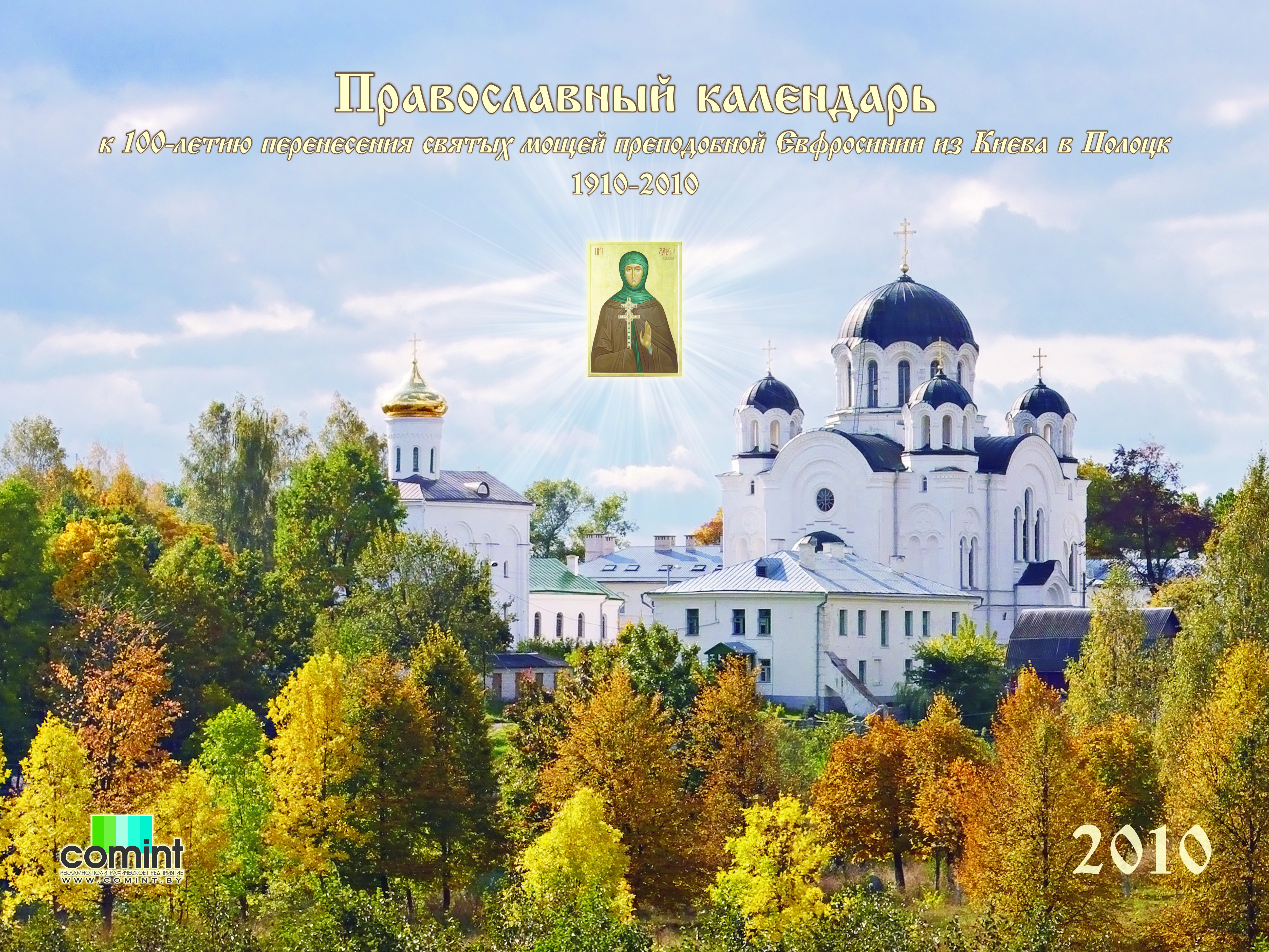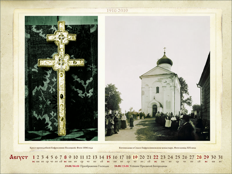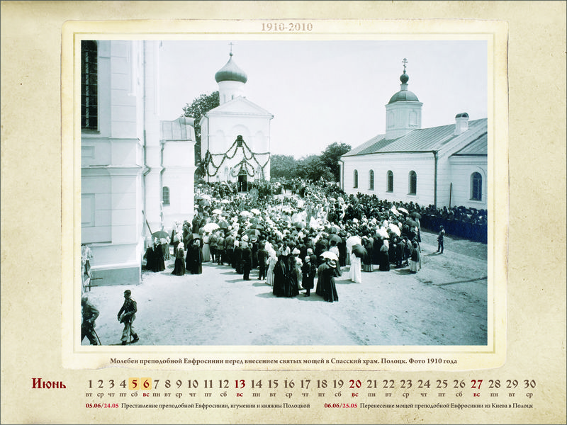 Православный календарь на 2010 год: К столетию перенесения святых мощей преподобной Евфросинии из Киева в Полоцк. 1910–2010Место издания: Спасо-Евфросиниевский монастырь в г. Полоцке Год издания: 2009 Примеры страниц: